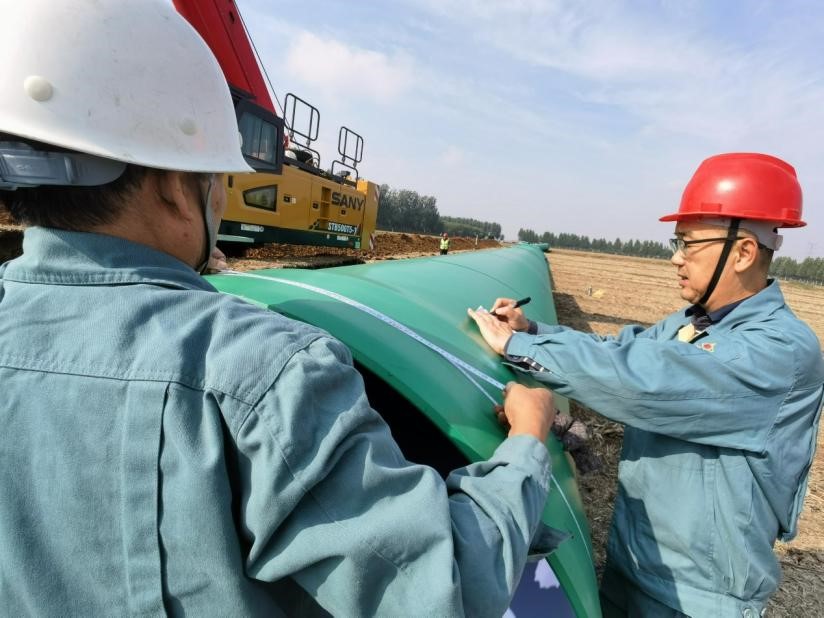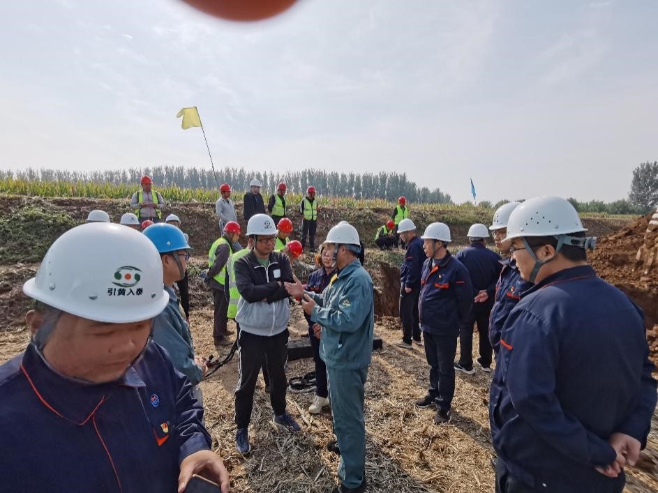 “引黃入泰”工程總投資23億元,輸管線總長(zhǎng)80公里,自東平縣至岱岳區(qū),途經(jīng)東平縣、肥城市、岱岳區(qū)約10個(gè)鄉(xiāng)鎮(zhèn)、89個(gè)村,每年取水規(guī)模5000萬(wàn)立方米。是泰安市委、市政府落實(shí)黃河國(guó)家戰(zhàn)略,解決泰安市的水資源比較匱乏,城市供水能力不足的重點(diǎn)工程,既是落實(shí)黃河流域生態(tài)保護(hù)和高質(zhì)量發(fā)展戰(zhàn)略、貫徹“四水四定”原則的重要舉措,又是提高城市承載能力、提升群眾生活品質(zhì)的重大民生工程。該工程主管道為DN1400,為確保工程質(zhì)量,減少樓稅率,“引黃入泰”工程指揮部慕名選用“宏力牌”EPDM橡膠密封圈,因?yàn)槭鞘状问褂?,工程?xiàng)目部來(lái)電要求宏力橡膠提高安裝指導(dǎo)。宏力橡膠更加重視此項(xiàng)重點(diǎn)工程,總經(jīng)理高學(xué)軍親自帶隊(duì),技術(shù)中心主任黃良根與售后工程師一起趕到現(xiàn)場(chǎng),與施工方技術(shù)人員交流溝通,順利進(jìn)行了膠圈安裝。