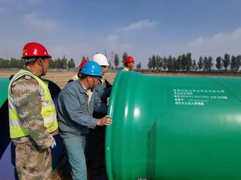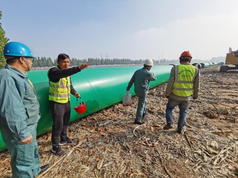 宏力橡膠總經(jīng)理高學(xué)軍親自到“引黃入泰”工程現(xiàn)場(chǎng)指導(dǎo)安裝。